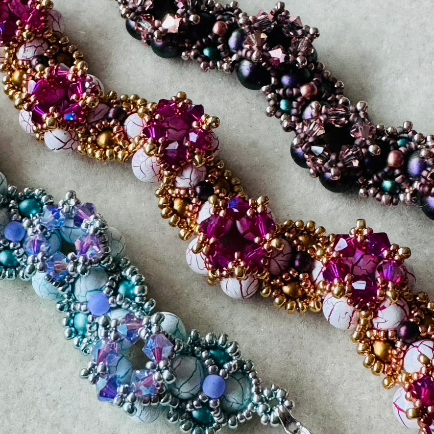 Dieses Set aus drei verschiedenen Armreifen ist perfekt geeignet um ein bisschen RAW in Runden zu üben. Die Anleitung ist eine erneuerte Version der alten Anleitung "Dragons and Roses", die manche von euch vielleicht noch kennen. Sie wurde komplett neu geschrieben und in großen Teilen geändert. Außerdem beinhaltet sie jetzt auch Video Sequenzen als zusätzliche Hilfe.