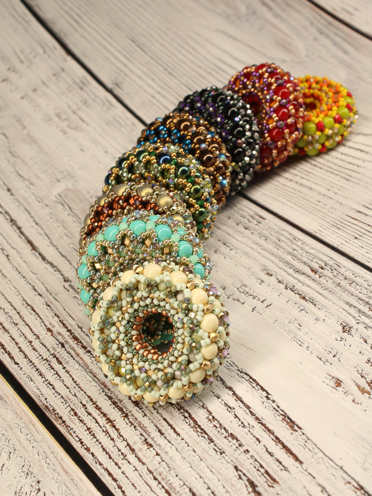 Die passenden Kits zur Anleitung beinhalten alle Perlen für einen Anhänger, wie auf dem Bild gezeigt. Zusätzlich beinhaltet das Kit die Perlen für eine Kette in MRAW (in der Anleitung gezeigt). Mindestlänge der Kette ist ca. 115cm.