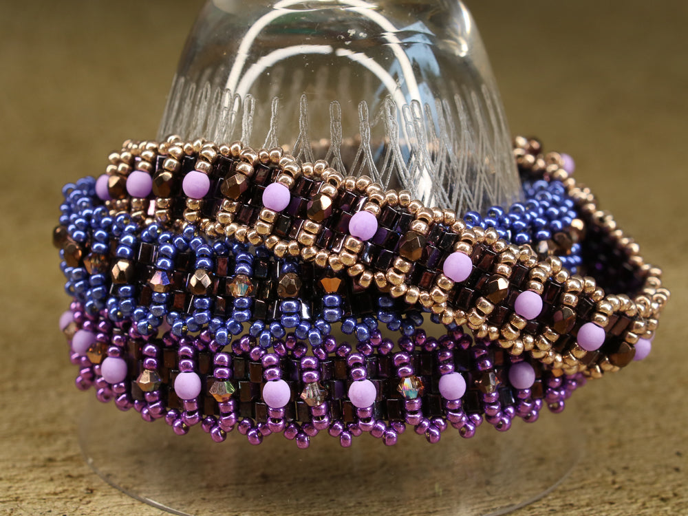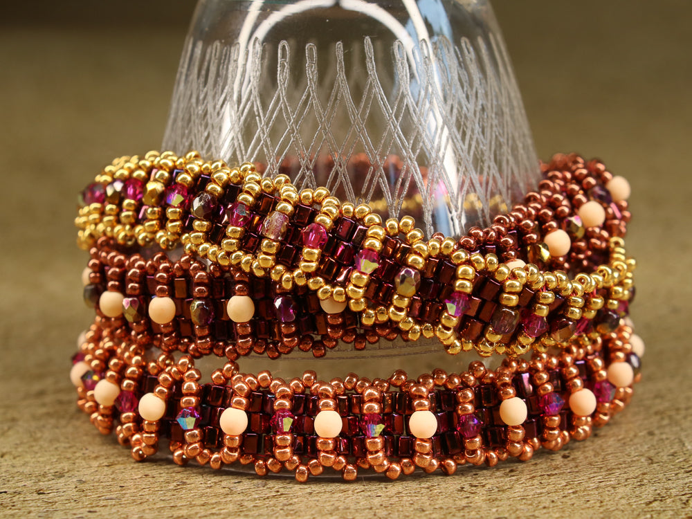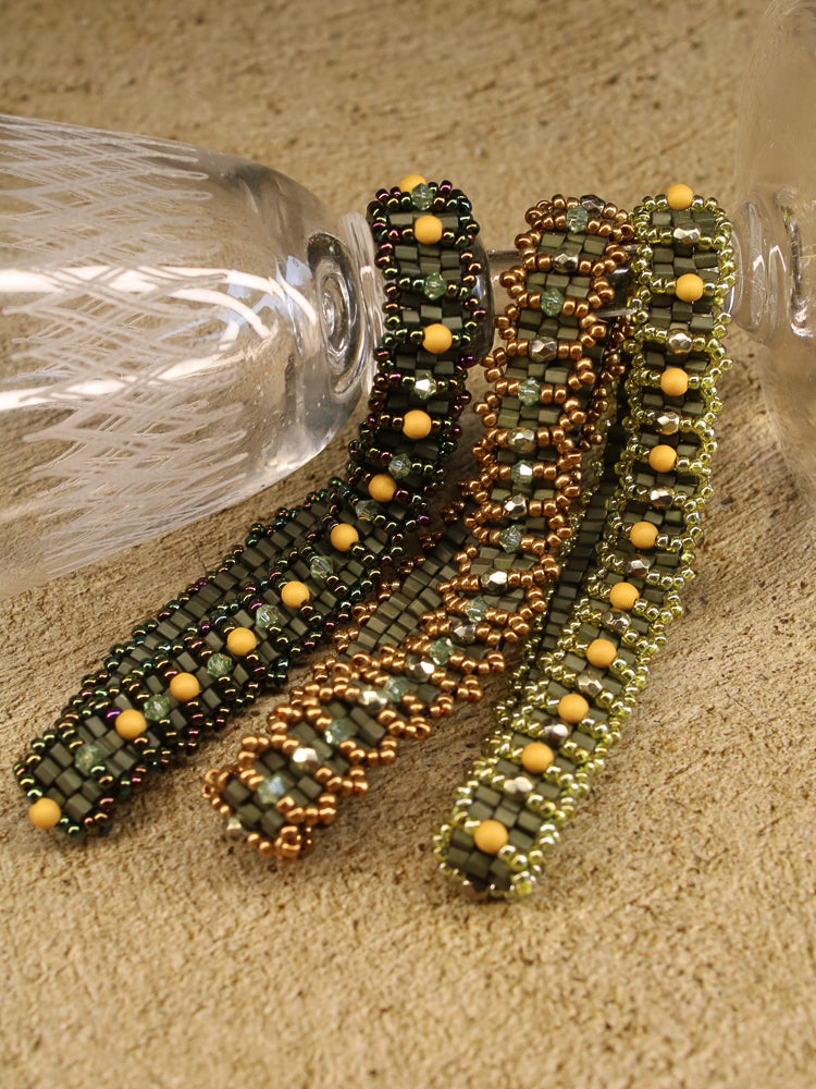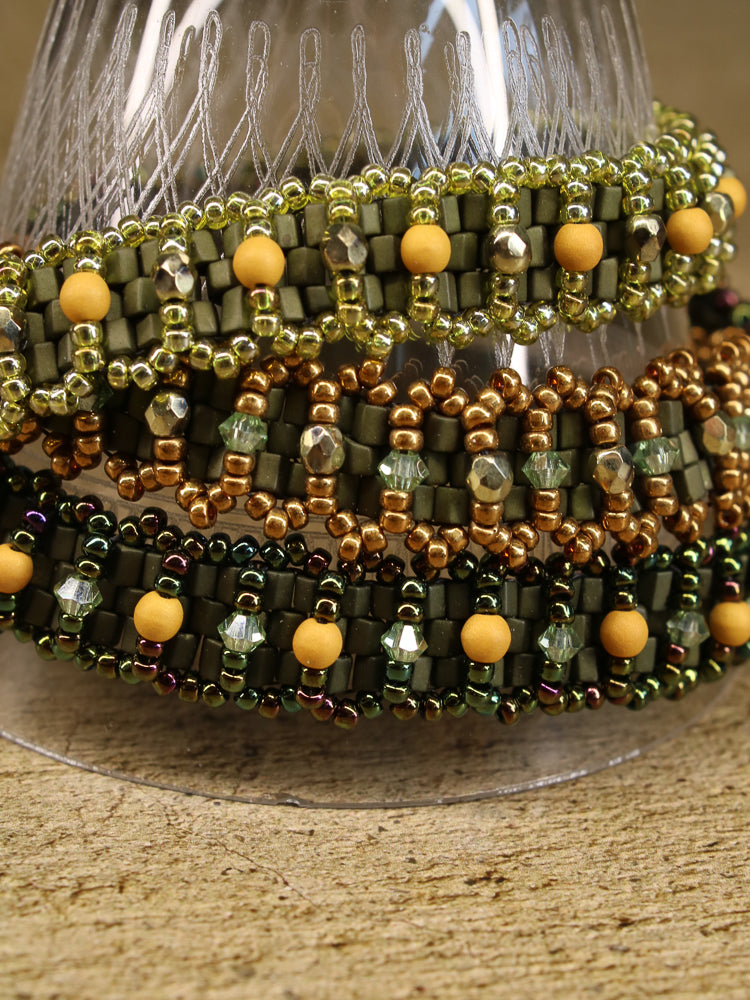 The matching kits for the pattern include all the beads for a set of three bangles as shown in the picture. Up to a length of 23cm.