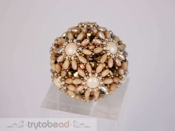 Required supplies: Round beads 8mm, Bicones 4mm, Rizo beads, Seed beads size 8, 11 and 15, Delica beads size 11.