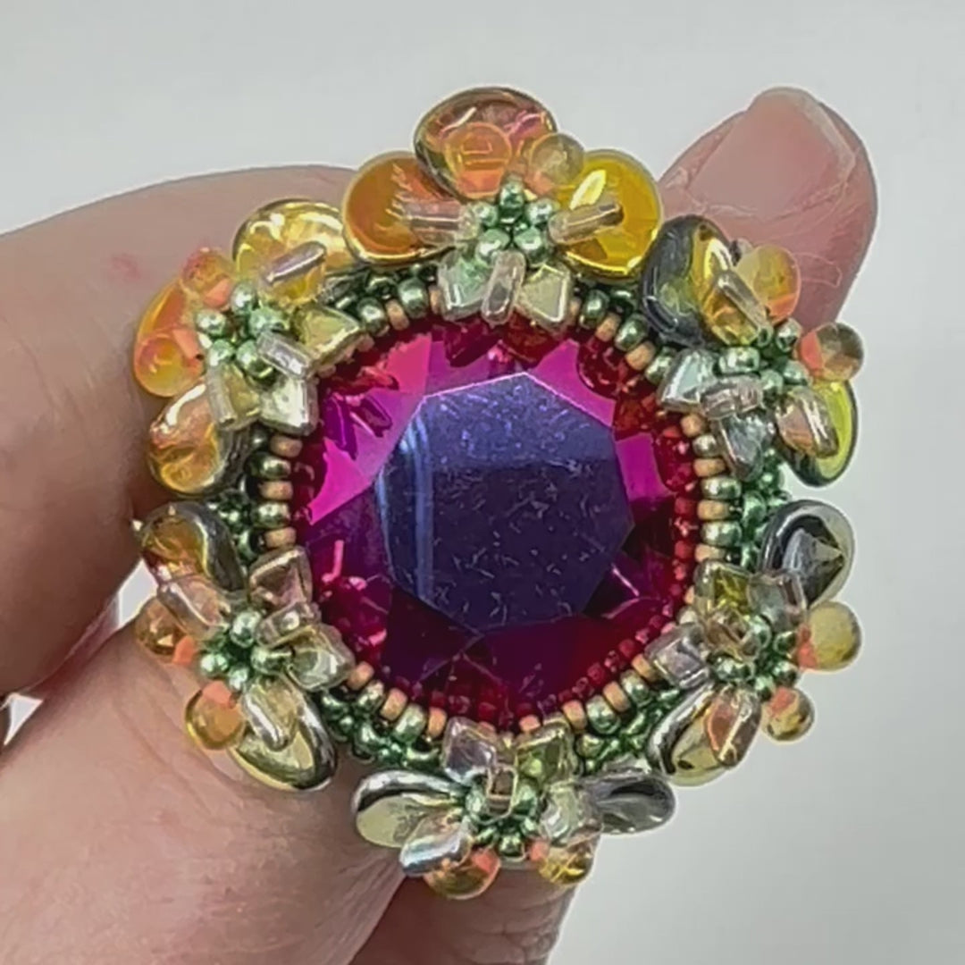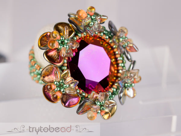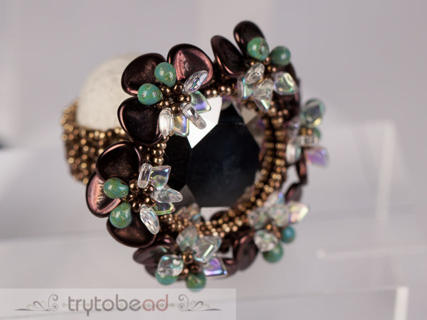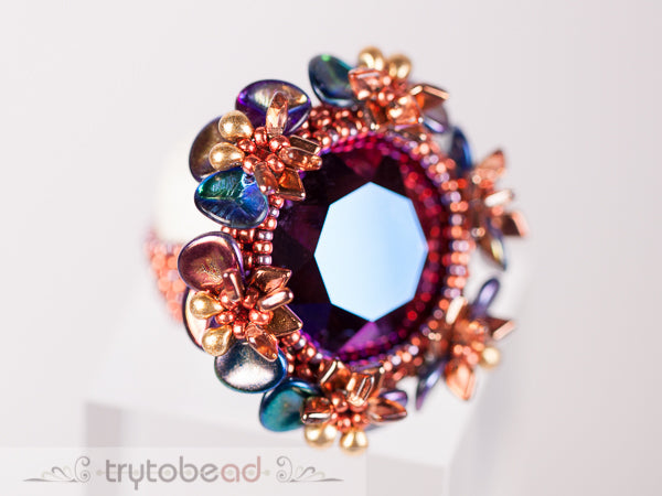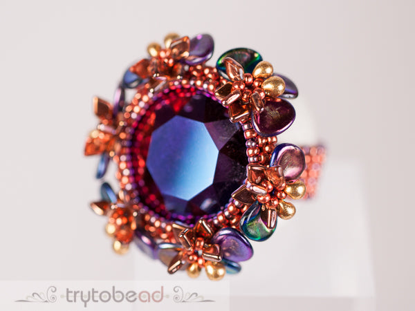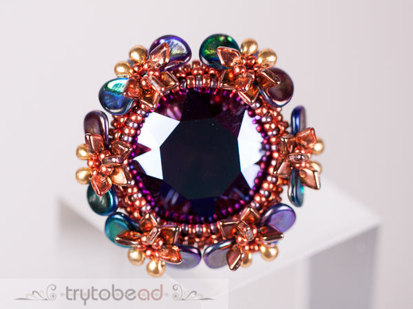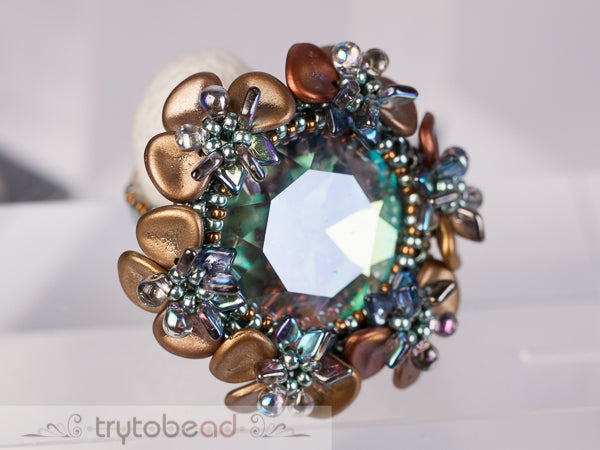 Required supplies: Round Stone 27mm, Dragon scale beads (TM), Miyuki Drop beads 3.4mm, Rose petals 7 x 8mm, seed beads size 11 and 15