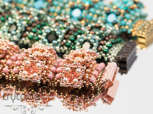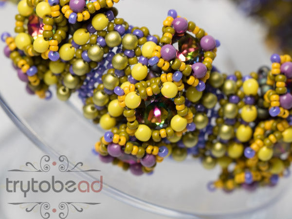 Required Supplies: Chatons 8mm, Round beads 3mm, Seed beads size 11 and 15.