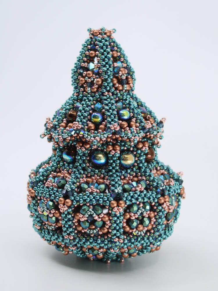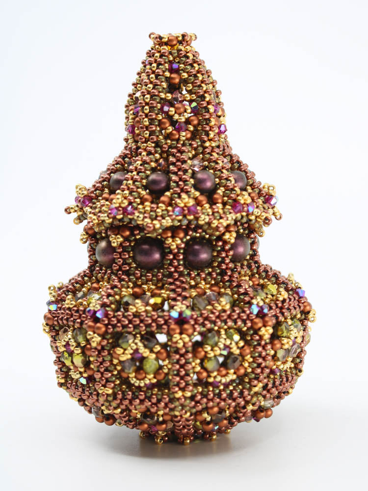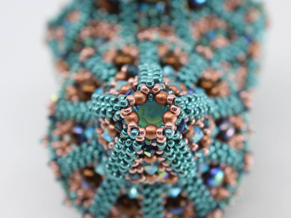 This sparkling treasure was created with a combination of RAW and Peyote. By adding the beads in layers, it is easier to make than you may expect. Follow me into a new way of constructing solid 3D structures.