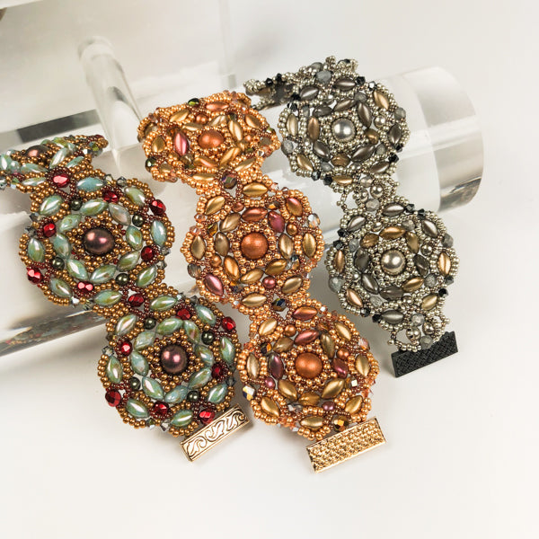 These large round components are joined to a very wearable and fancy bracelet. The design was inspired by floral ornaments in the asian architecture. The project is not very time consuming and quite easy to make.