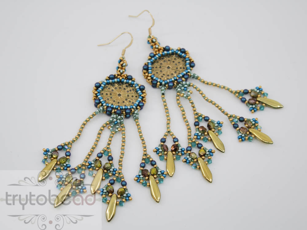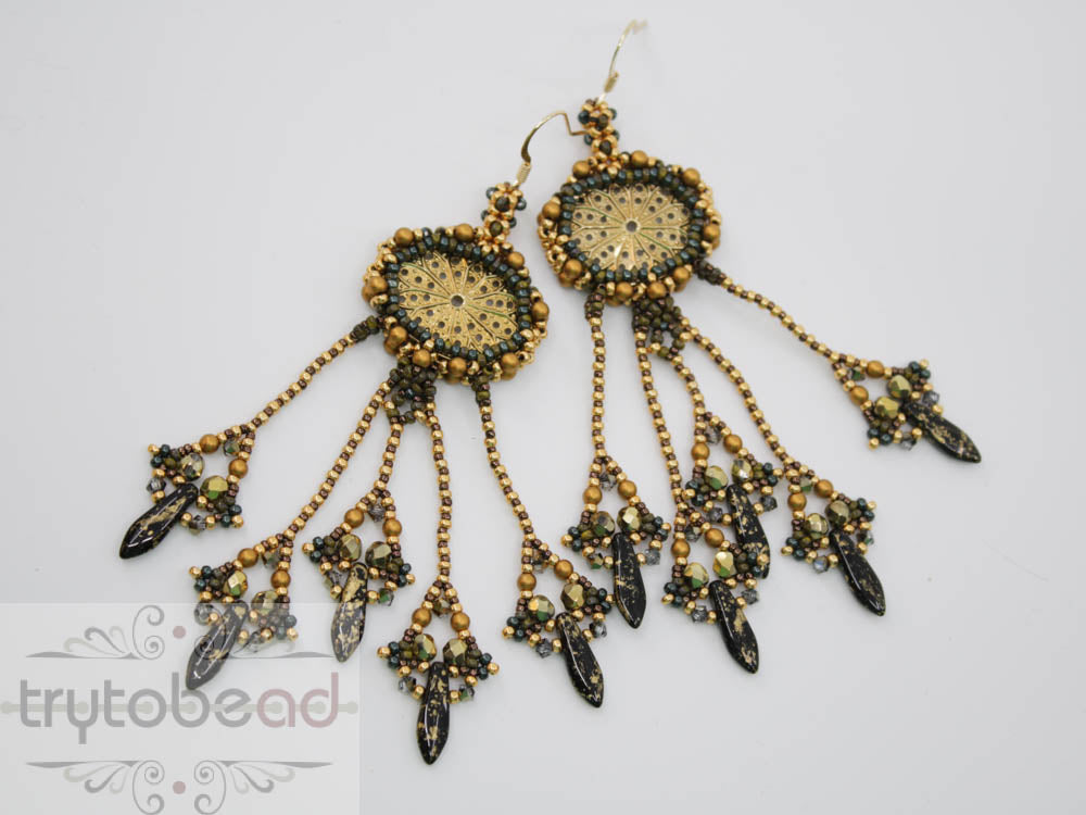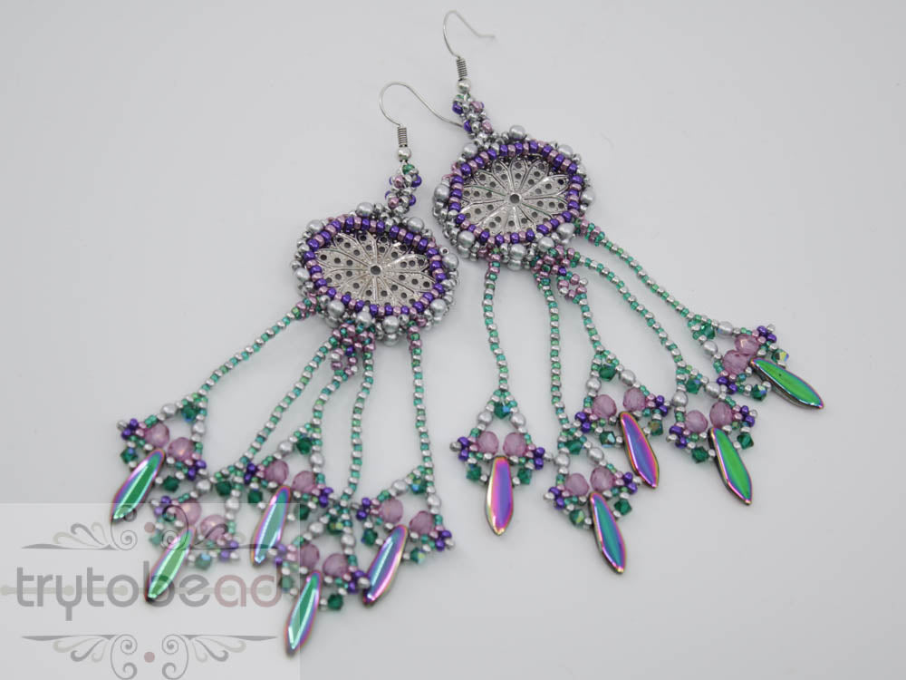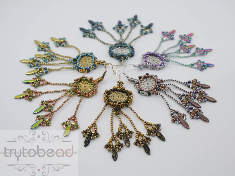 The matching kits for the pattern include all the supplies to make one pair of earrings as shown in the picture.