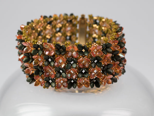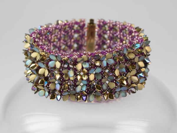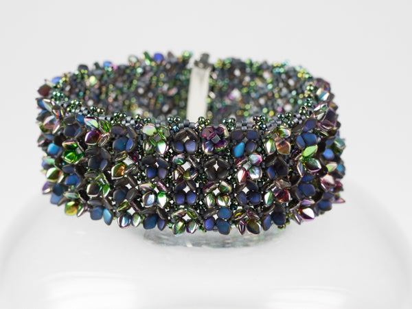 Required Supplies: Gekko beads (TM), Delica beads size 11, seed beads size 11, slider clasp with 4 loops.