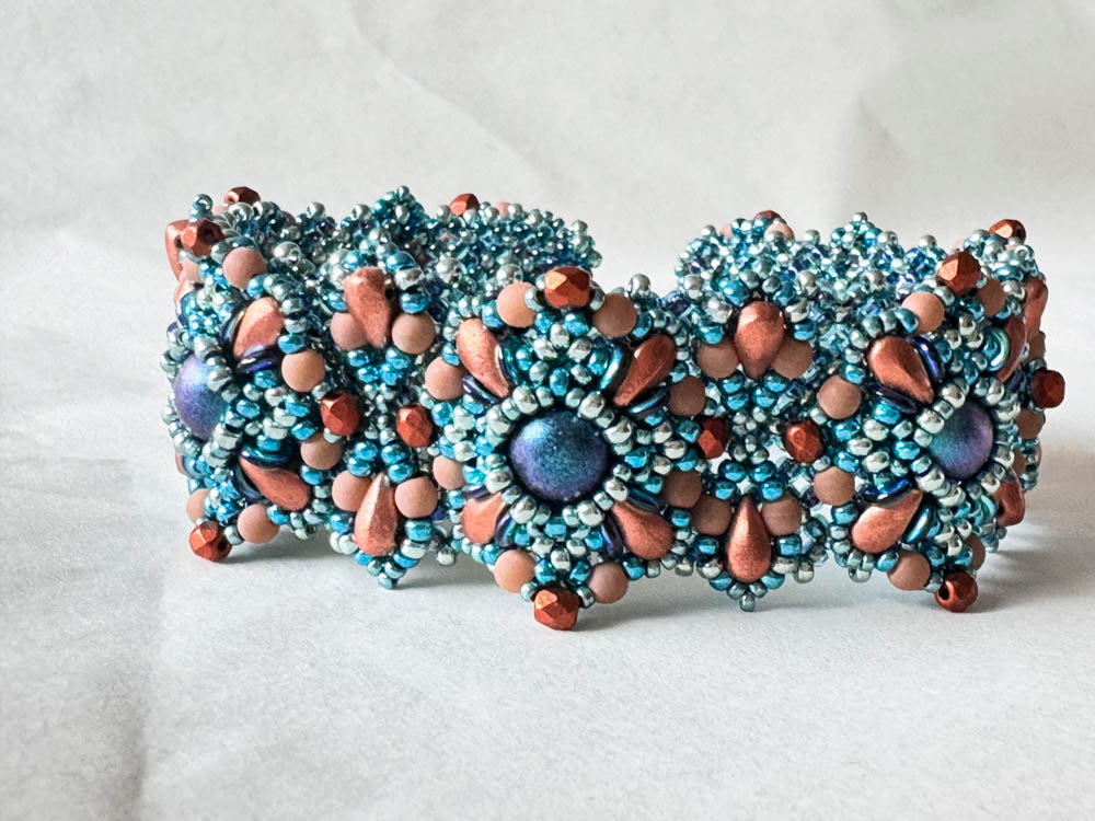 The matching kits for the pattern include all the beads needed for one bracelet as shown in the picture (for 8 units and up to 23cm).