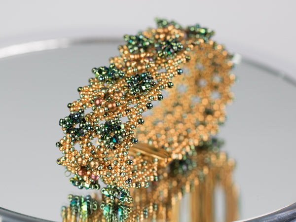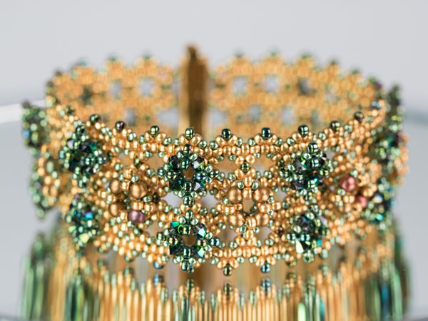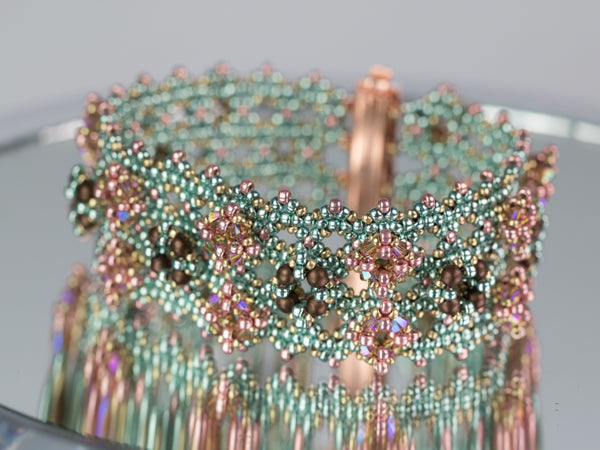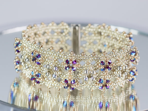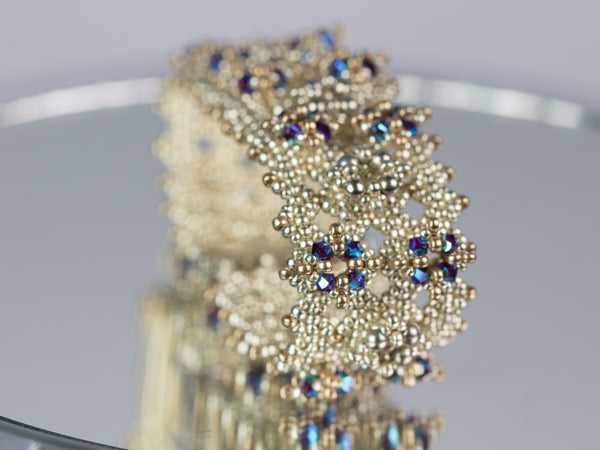 This is a very delicate bracelet in a lace style and yet it has a fine sparkle due to many little crystals on the top.
