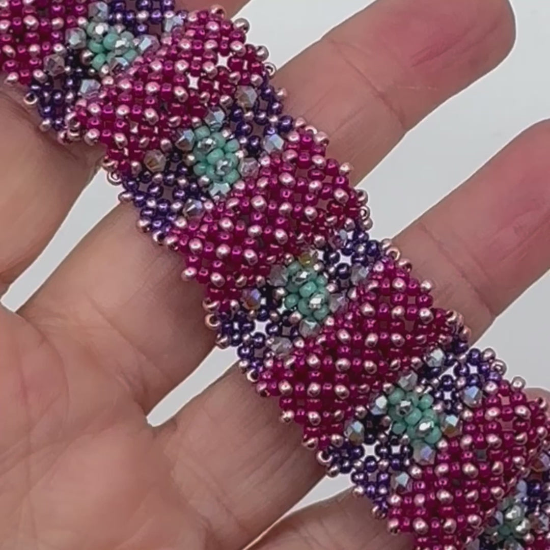 This bracelet is with its soft structure perfect for a daily wear. A central CRAW strip is all you need to create this wave like shape. A perfect piece to play with contrasting colors.