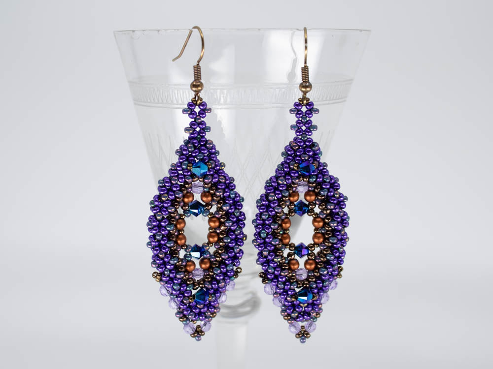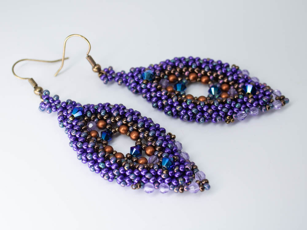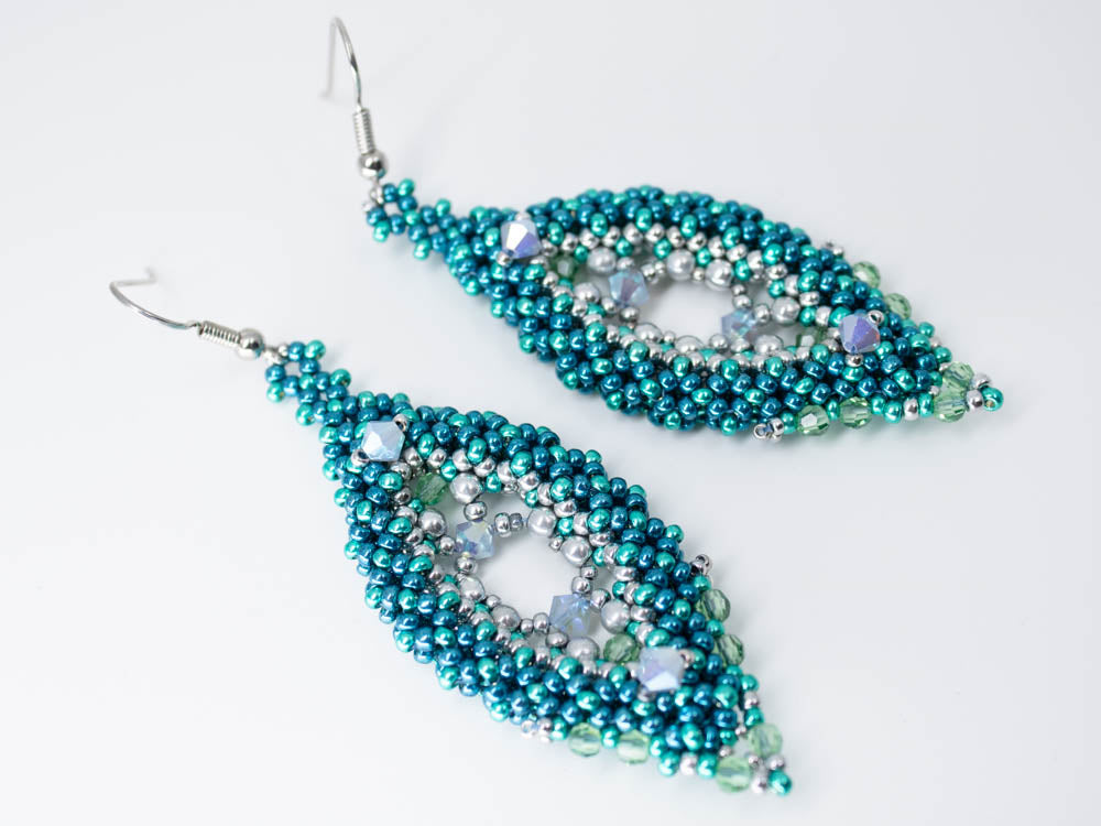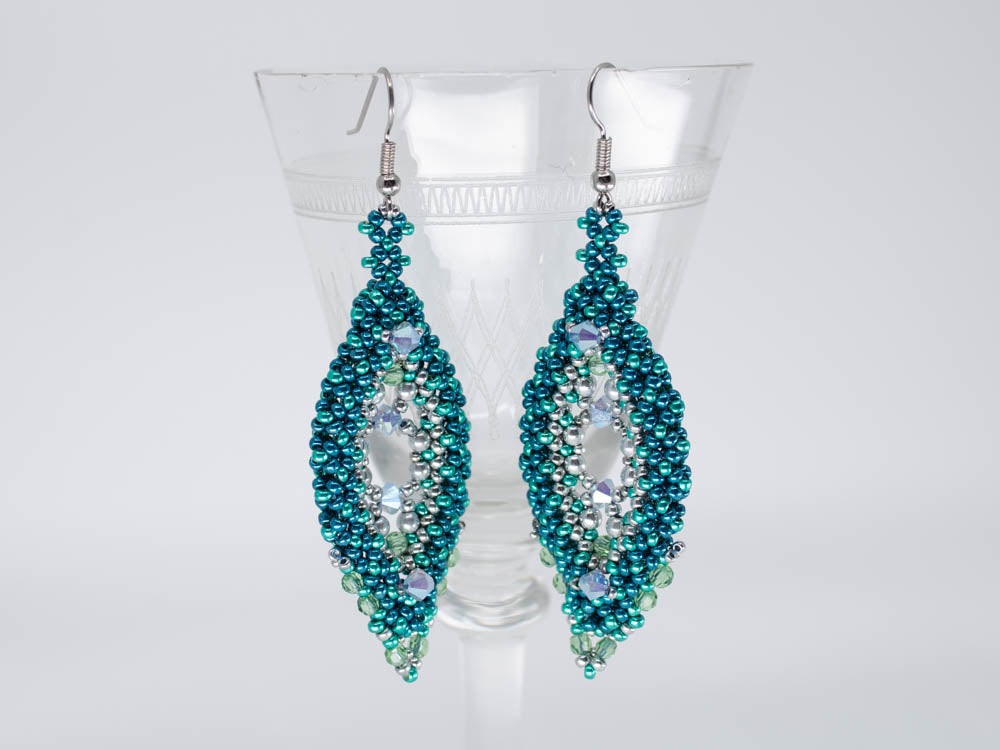Required supplies: Ear wires, Bicones 4mm, round crystals 3mm, round beads 3mm, seed beads size 11 and 15.