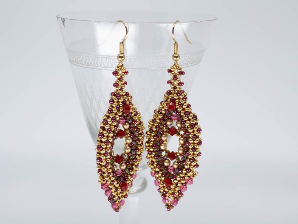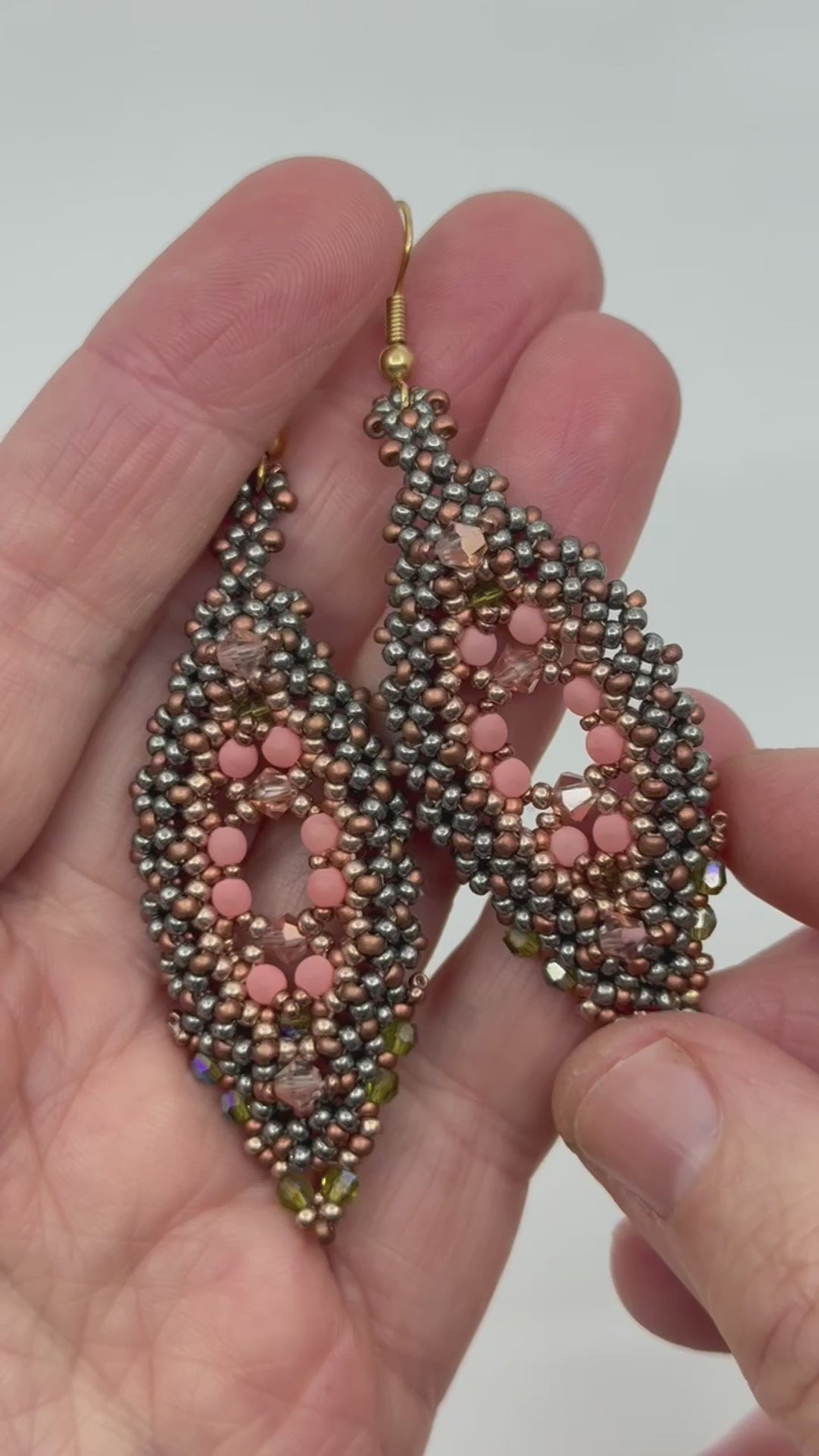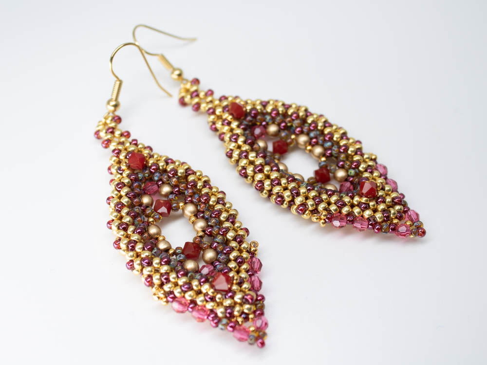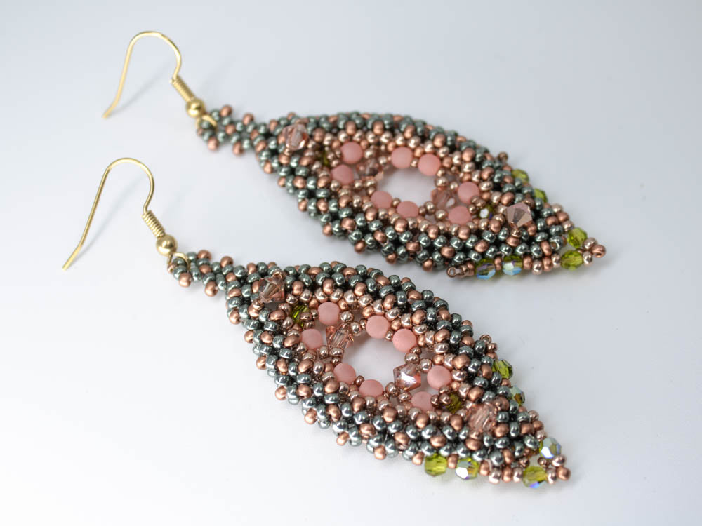 Required supplies: Ear wires, Bicones 4mm, round crystals 3mm, round beads 3mm, seed beads size 11 and 15.