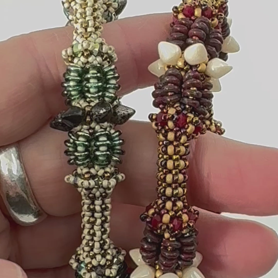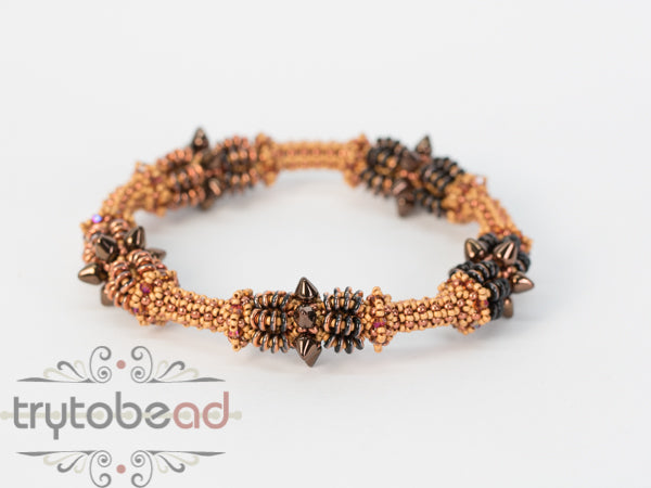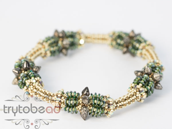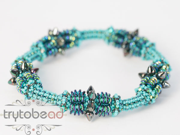 Required supplies: Spiky buttons (TM), O beads (TM), Bicones 3mm, seed beads size 11 and 15.