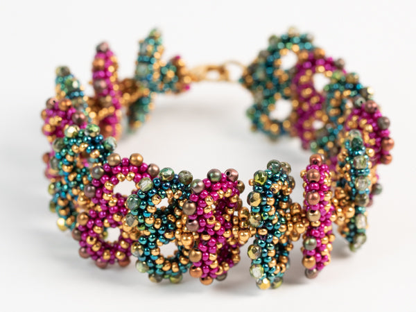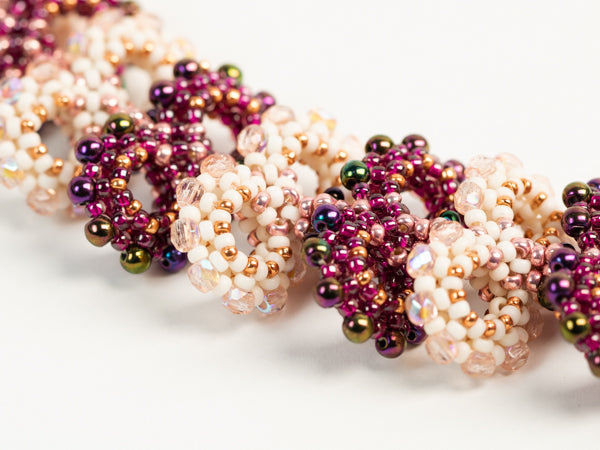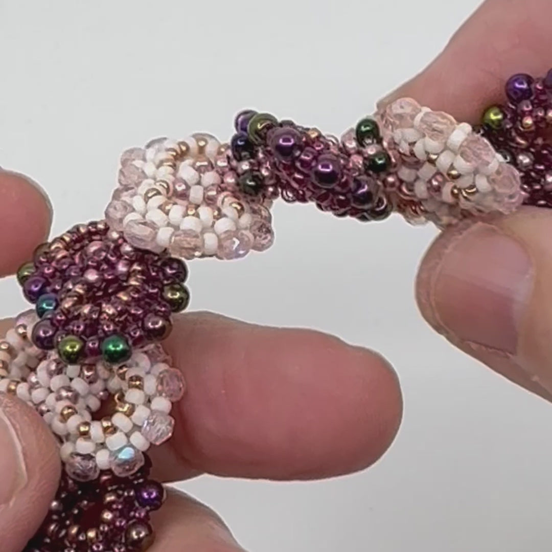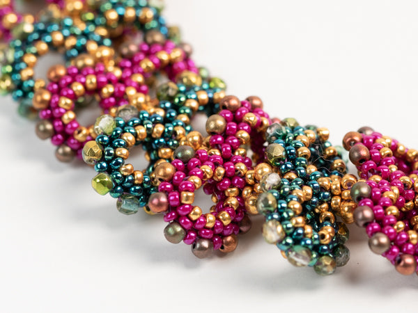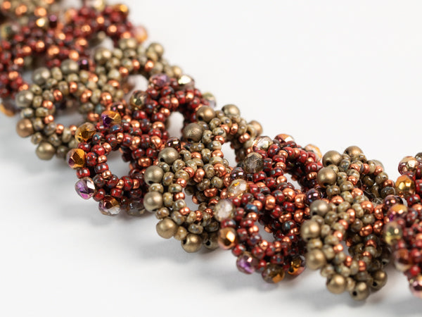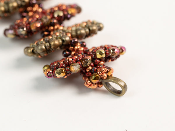 Many little squiggles are joined in this very playful design. The mix of Double CRAW and CRAW opens new directions for your beadwork. You should be familiar with CRAW to make this project.