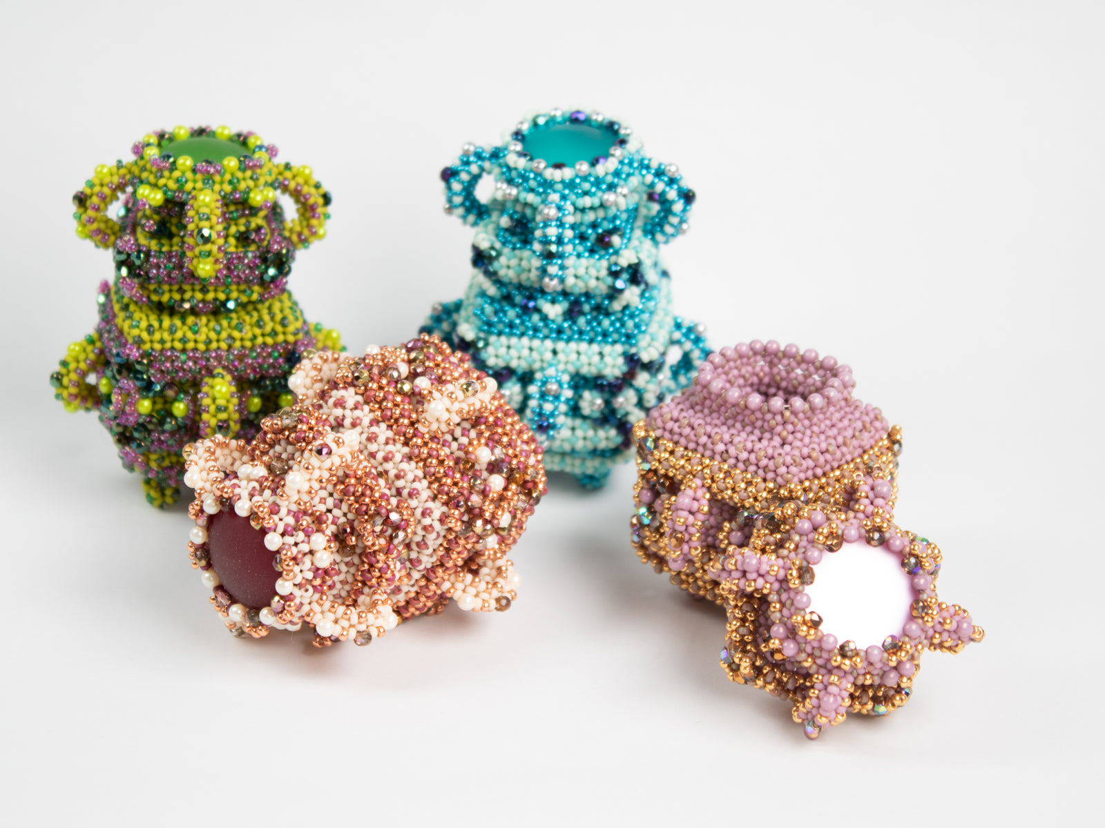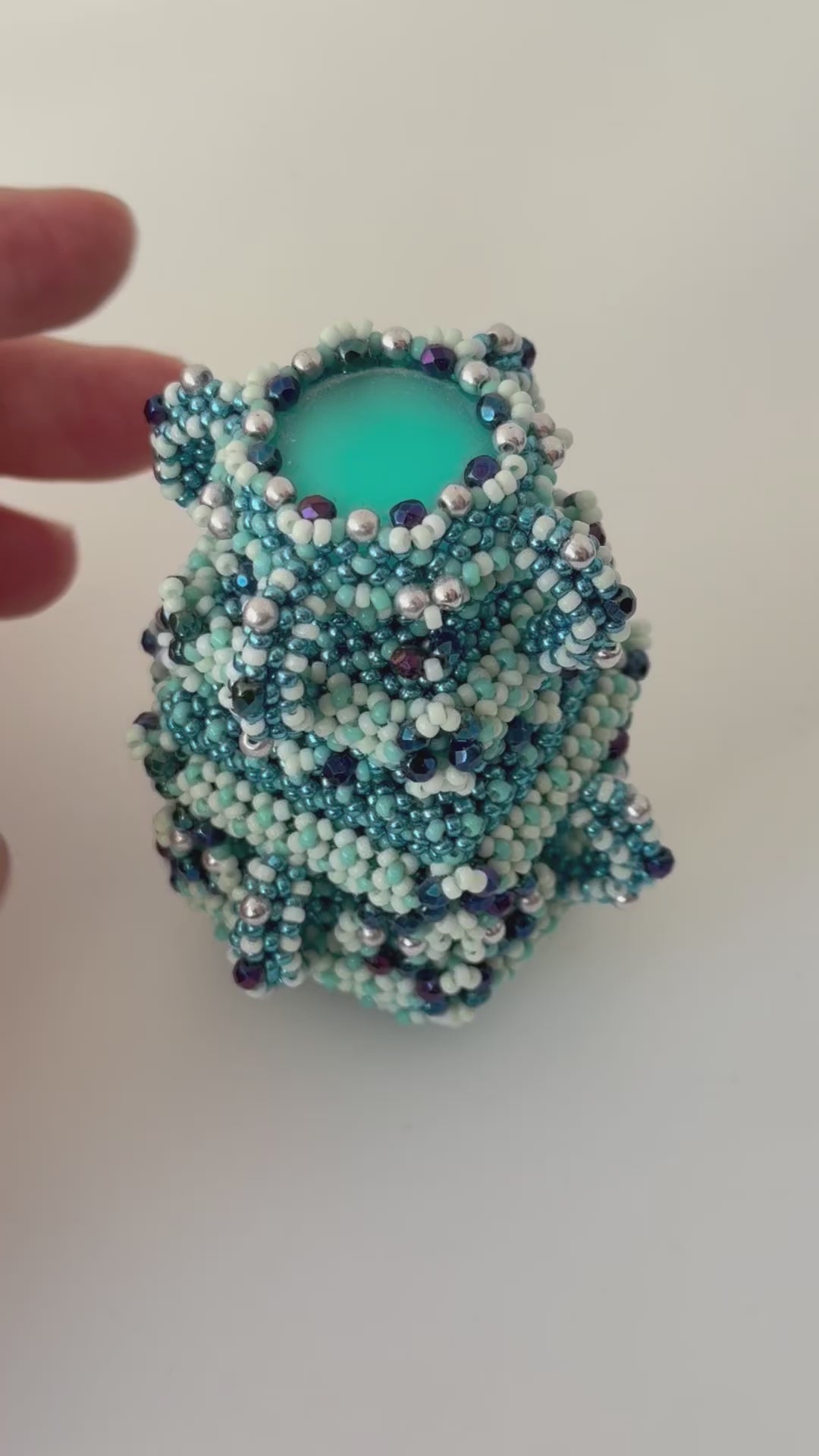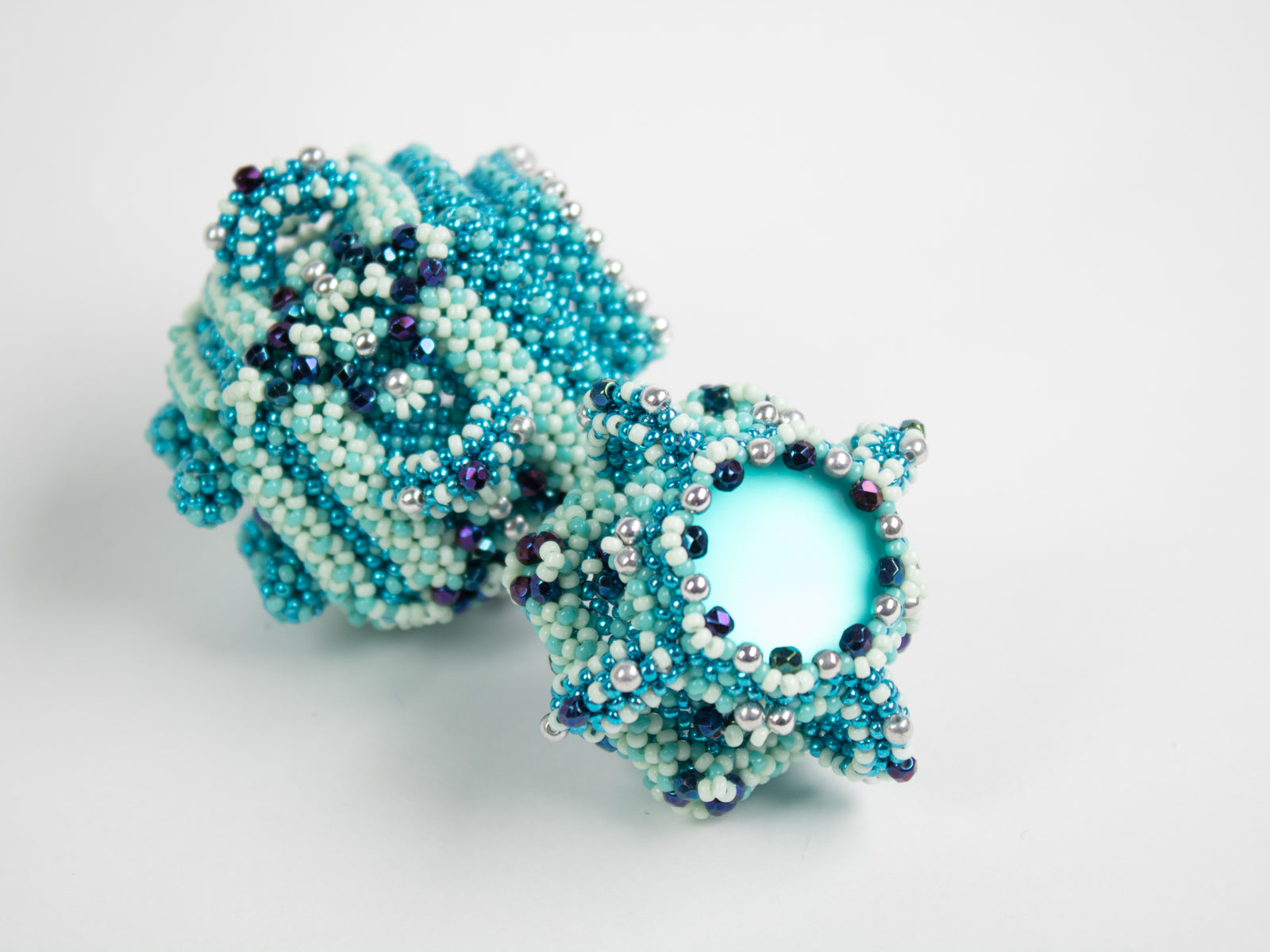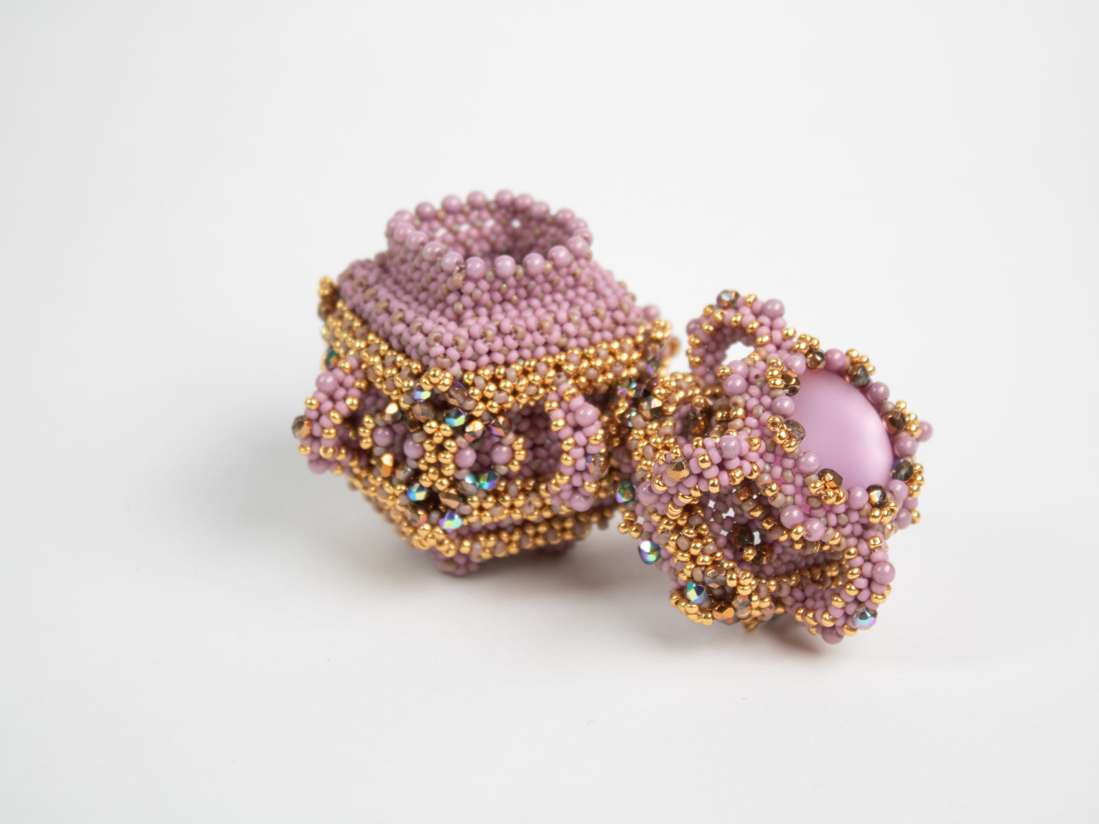 My first beaded box with a mix of Double RAW, Cubic RAW and Chenille stitch. The box is about 5x7cm.