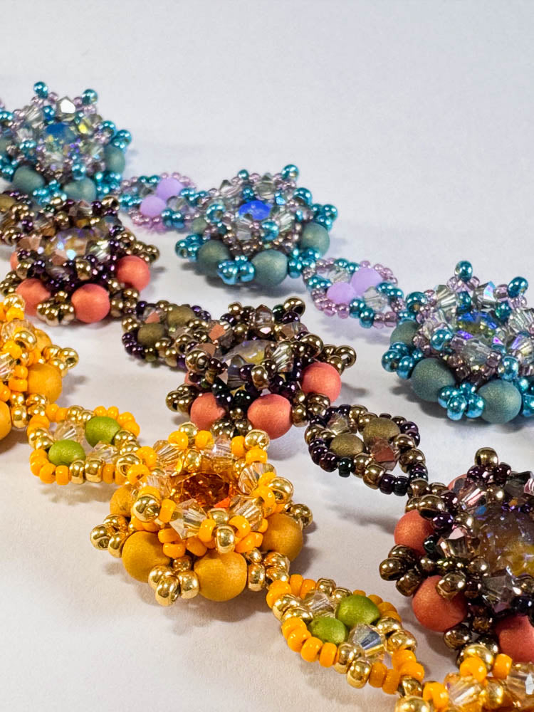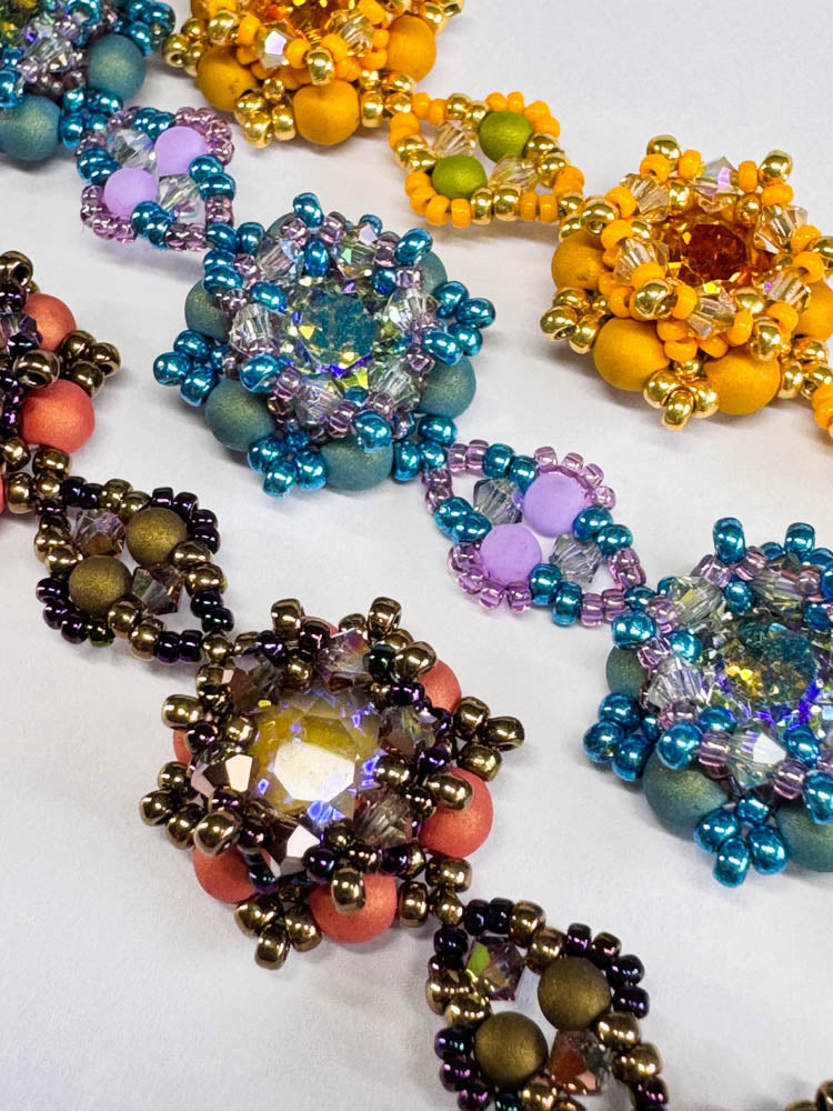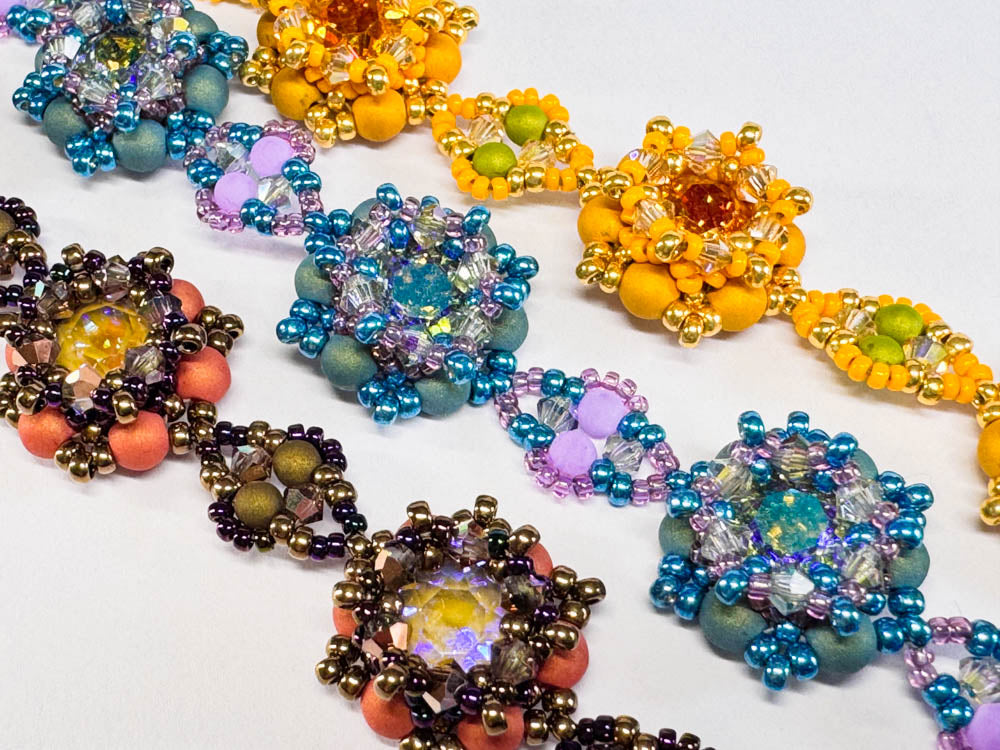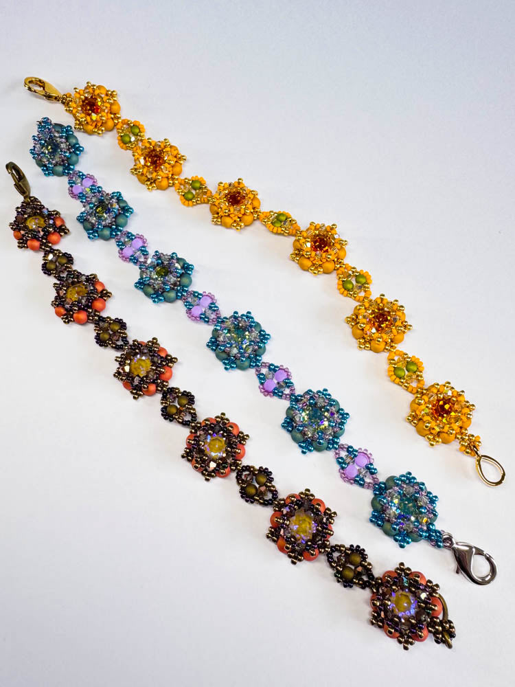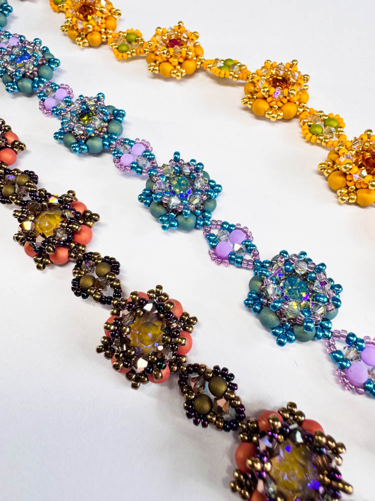 The matching kits for the pattern "Verena" include all the beads needed for one bracelet of up to 22cm length as shown in the picture.